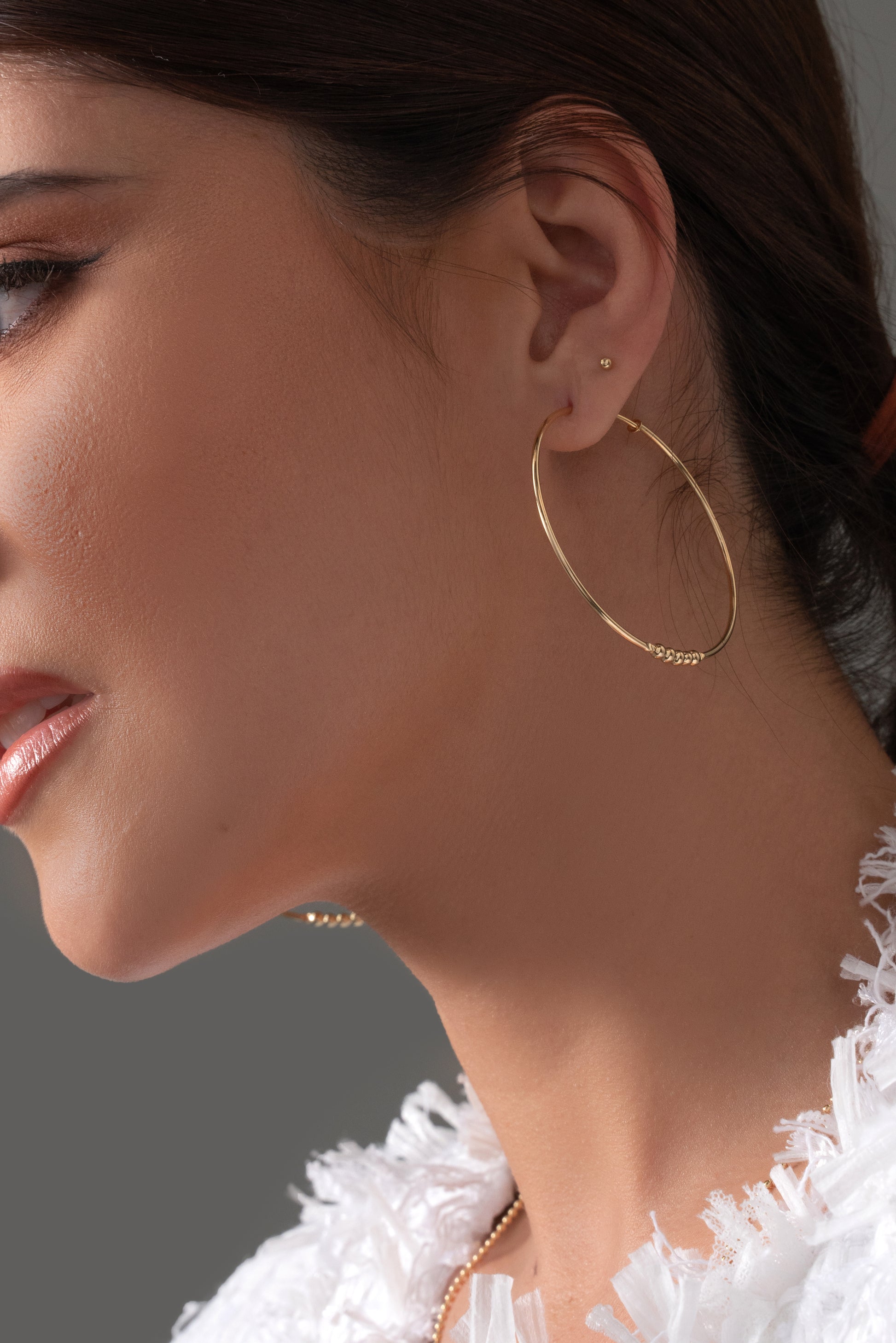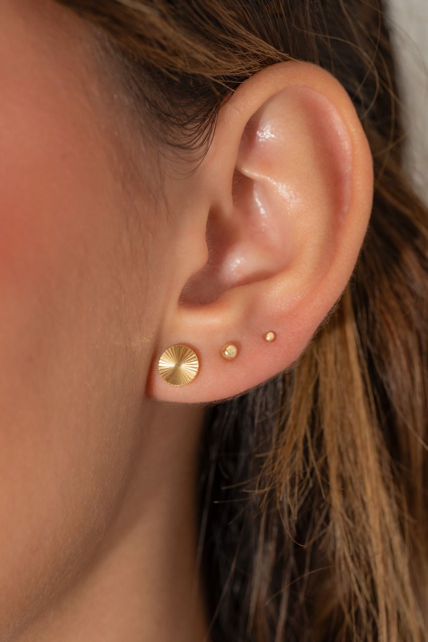 Las prendas y accesorios en Oro Laminado 18k son Semi Joyas, puedes tener y lucir piezas con el color y la textura del oro 18k a un precio más asequible. Nuestros Aretes Balin #2 están elaborados sobre una aleación de cobre y paladio y sus 3 capas externas son láminas de oro 18k.