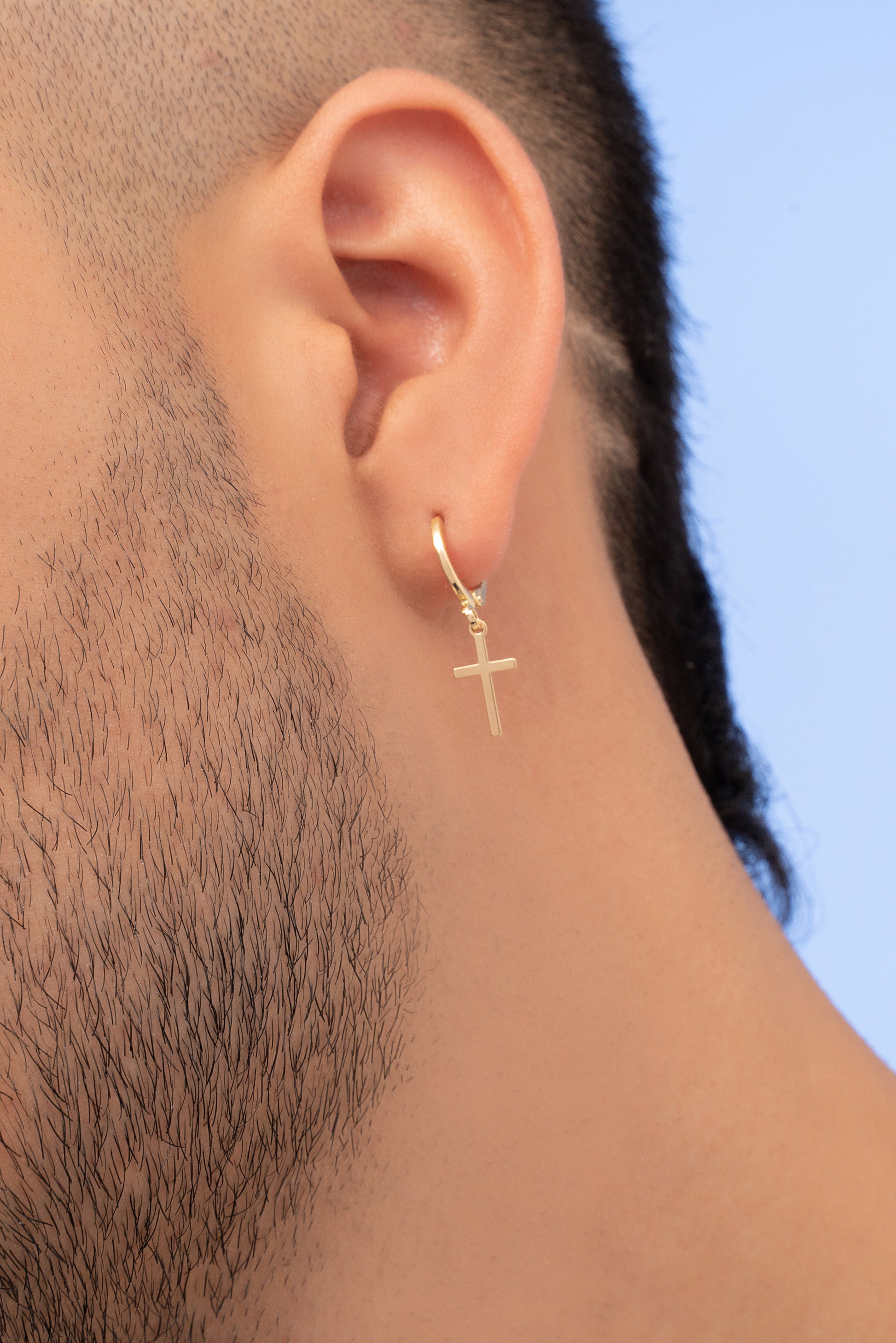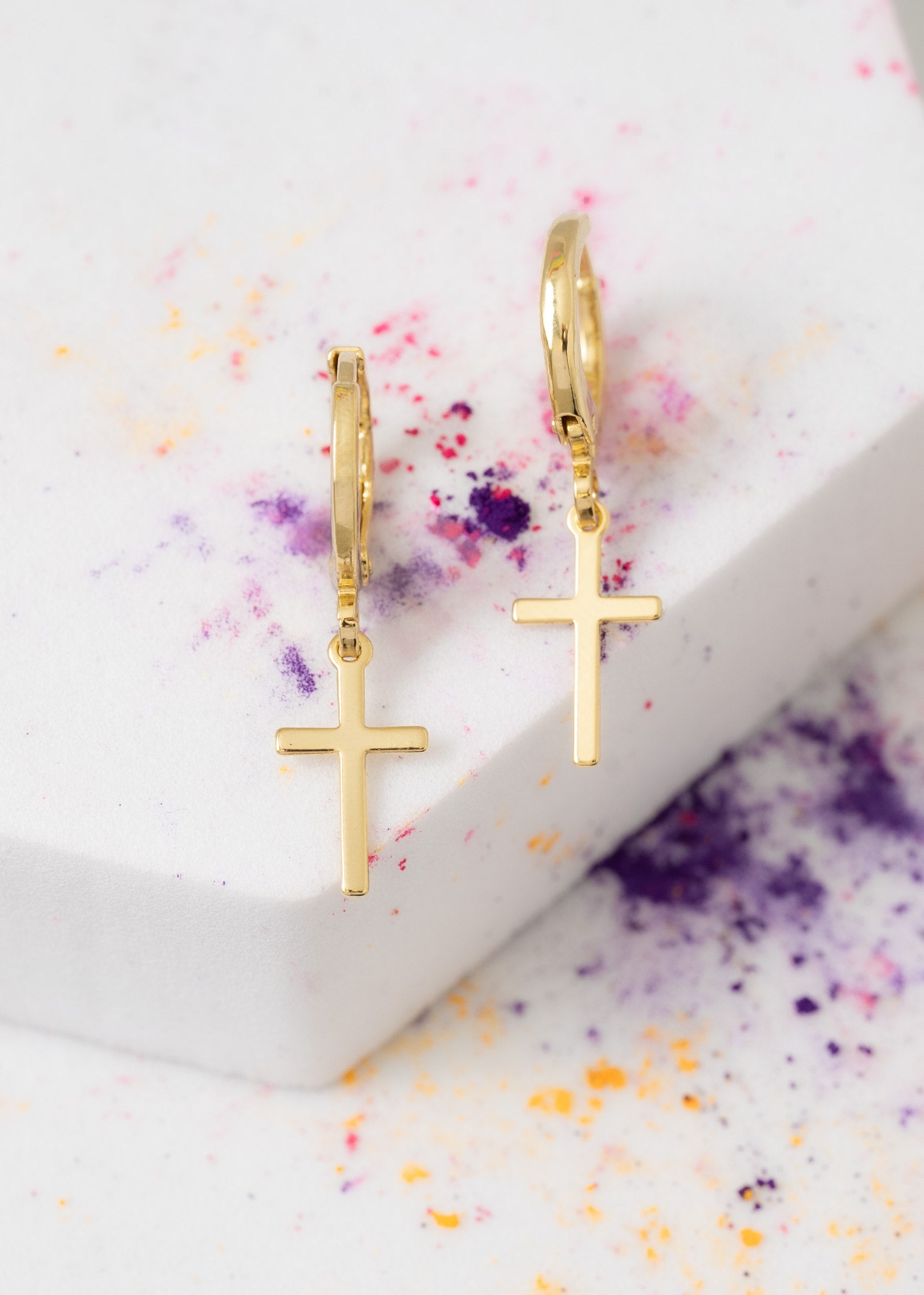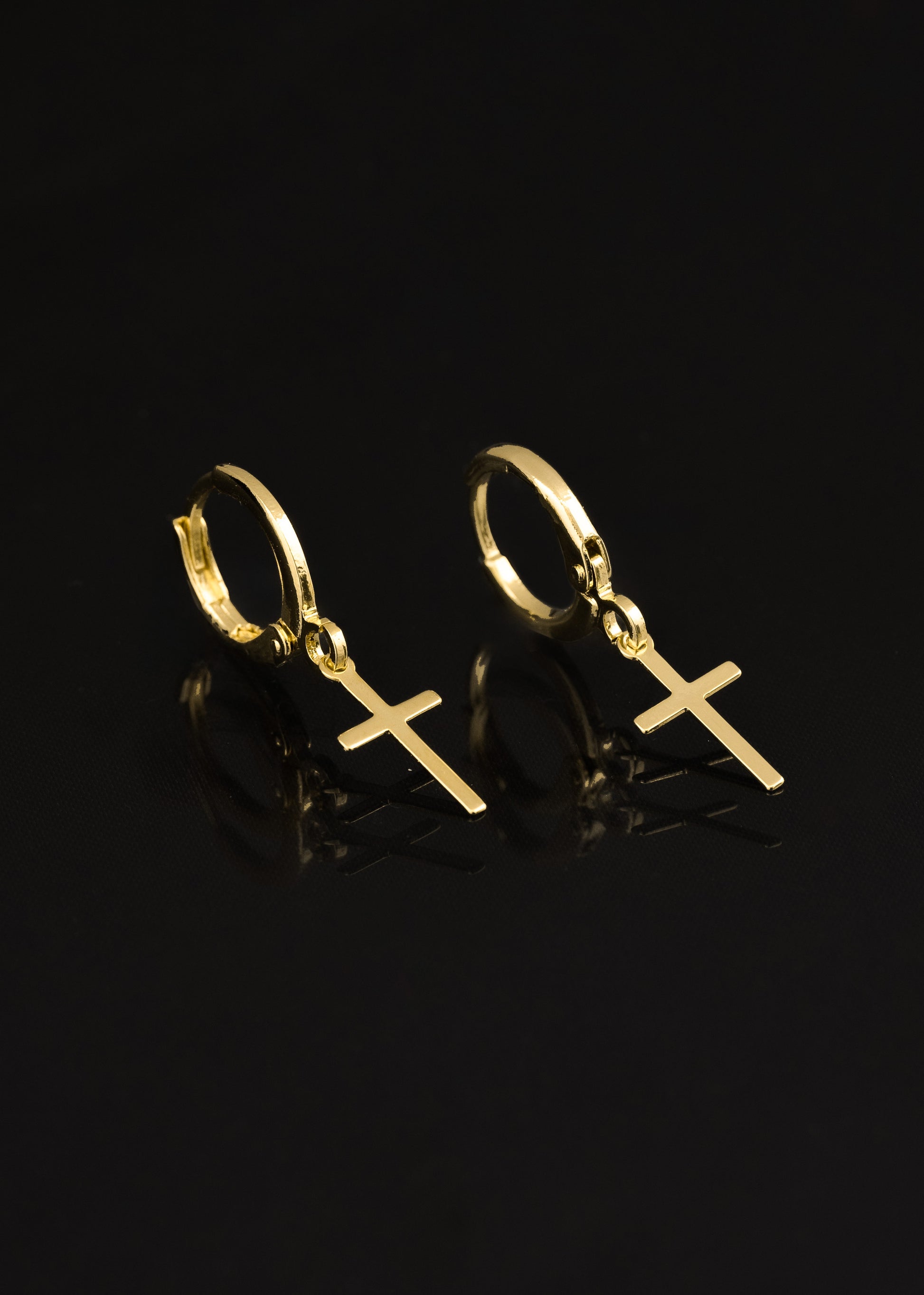 Las prendas y accesorios en Oro Laminado 18k son Semi Joyas, puedes tener y lucir piezas con el color y la textura del oro 18k a un precio más asequible. Nuestros Aretes Candonga Cruz Delgada están elaborados sobre una aleación de cobre y paladio y sus 3 capas externas son láminas de oro 18k.