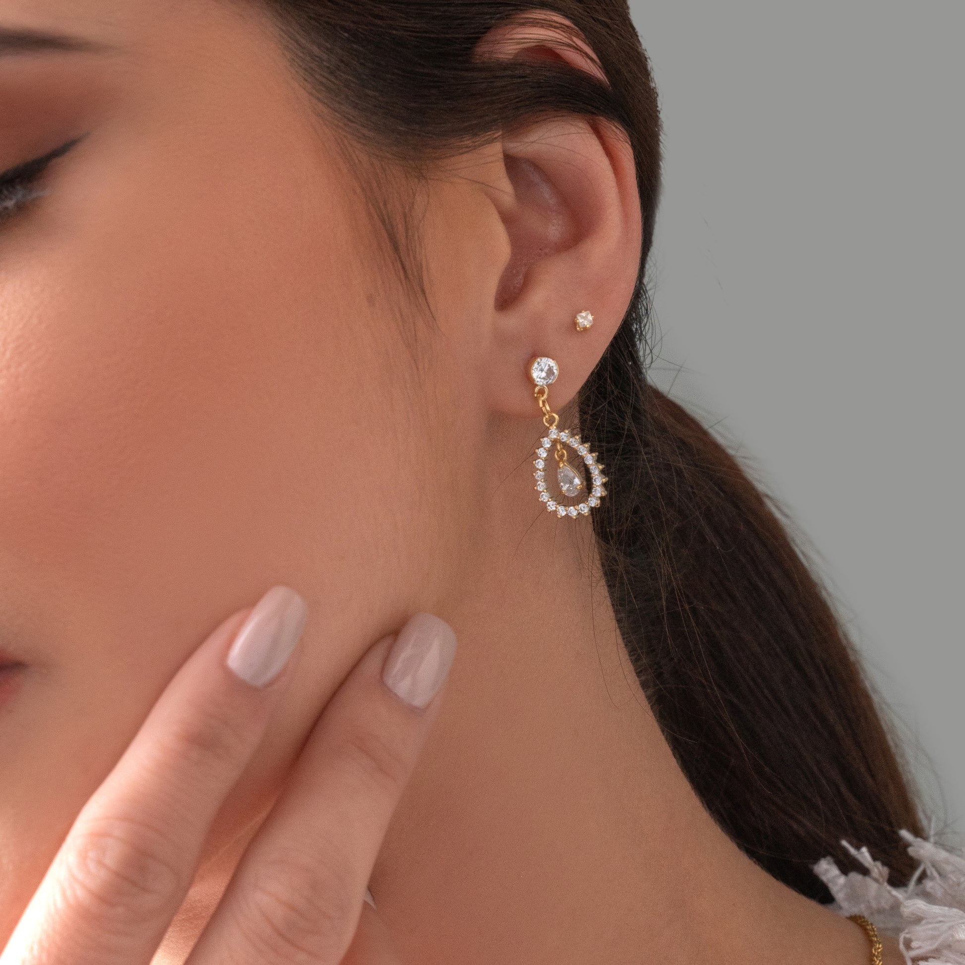 Las prendas y accesorios en Oro Laminado 18k son Semi Joyas, puedes tener y lucir piezas con el color y la textura del oro 18k a un precio más asequible. Nuestros Aretes Circonia redonda cristal 2mm están elaborados sobre una aleación de cobre y paladio y sus 3 capas externas son láminas de oro 18k.