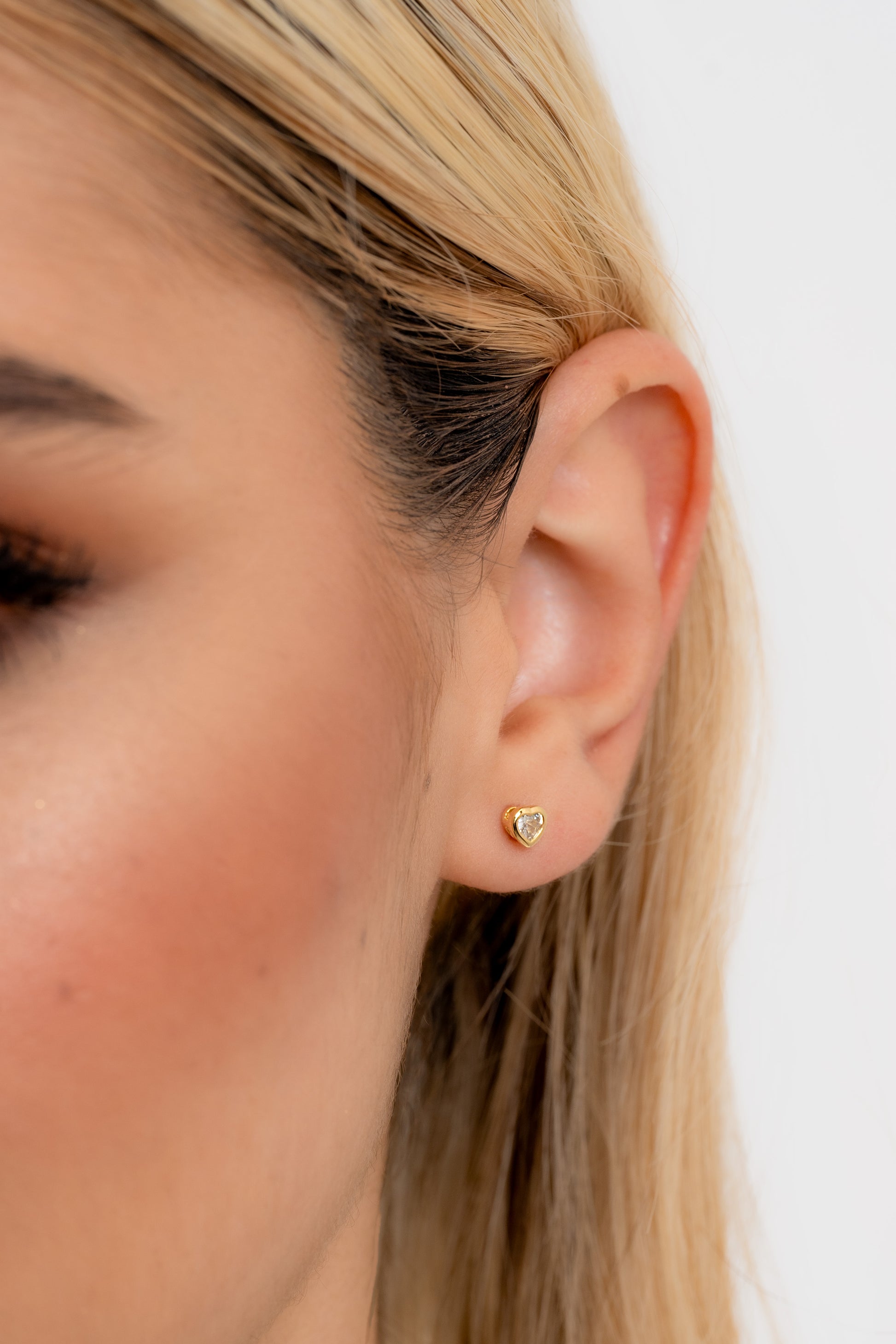 Las prendas y accesorios en Oro Laminado 18k son Semi Joyas, puedes tener y lucir piezas con el color y la textura del oro 18k a un precio más asequible. Nuestros Aretes Corazón Mini Circonia están elaborados sobre una aleación de cobre y paladio y sus 3 capas externas son láminas de oro 18k.