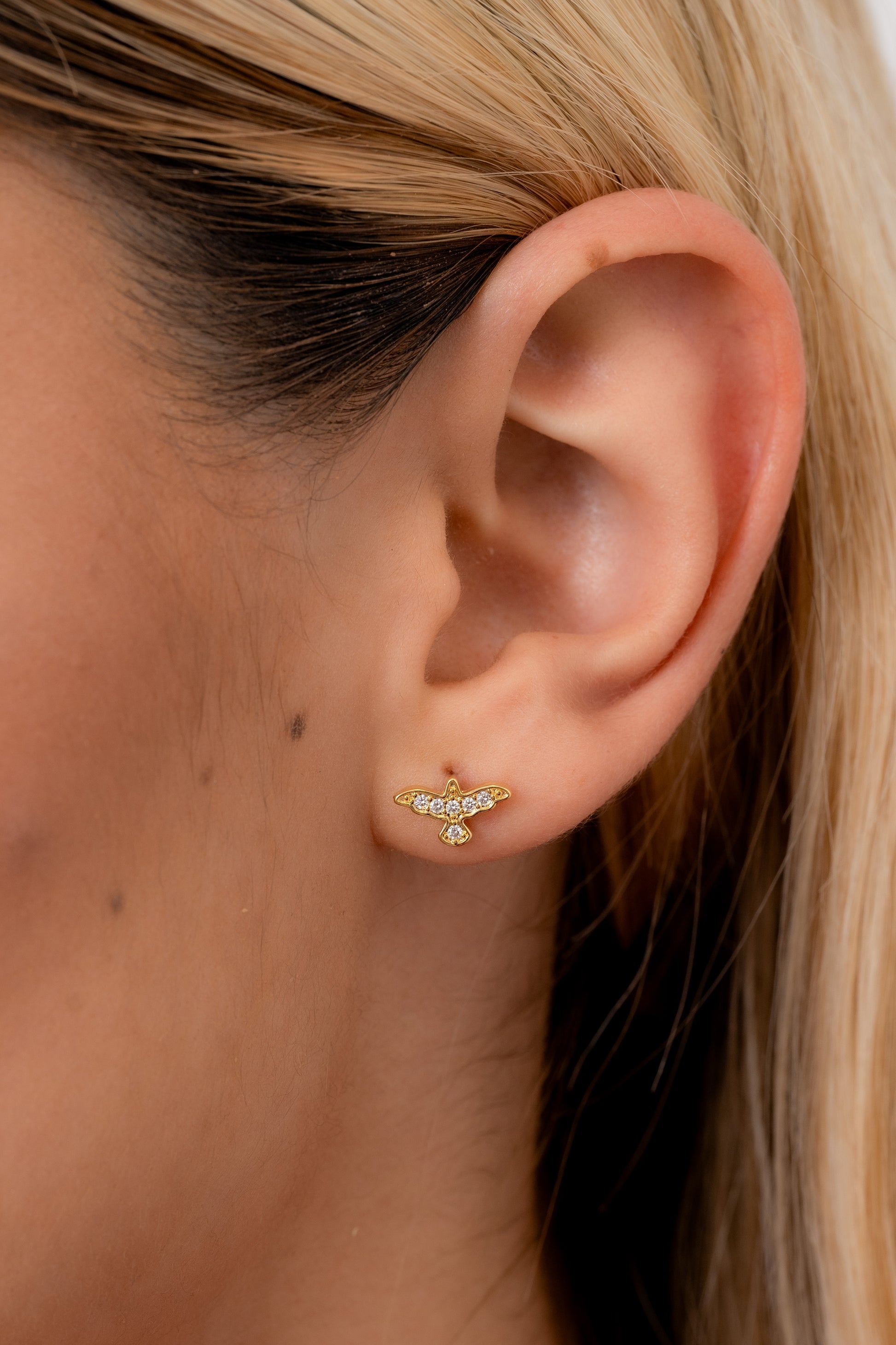 Las prendas y accesorios en Oro Laminado 18k son Semi Joyas, puedes tener y lucir piezas con el color y la textura del oro 18k a un precio más asequible. Nuestros Aretes Espíritu Santo están elaborados sobre una aleación de cobre y paladio y sus 3 capas externas son láminas de oro 18k.
