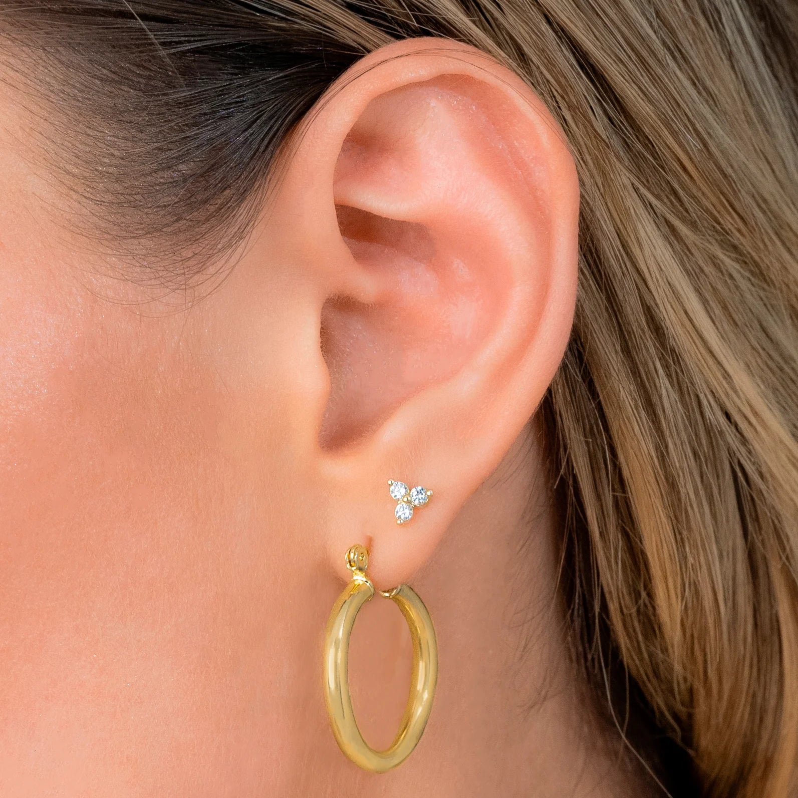 Las prendas y accesorios en Oro Laminado 18k son Semi Joyas, puedes tener y lucir piezas con el color y la textura del oro 18k a un precio más asequible. Nuestros Aretes Flower están elaborados sobre una aleación de cobre y paladio y sus 3 capas externas son láminas de oro 18k.