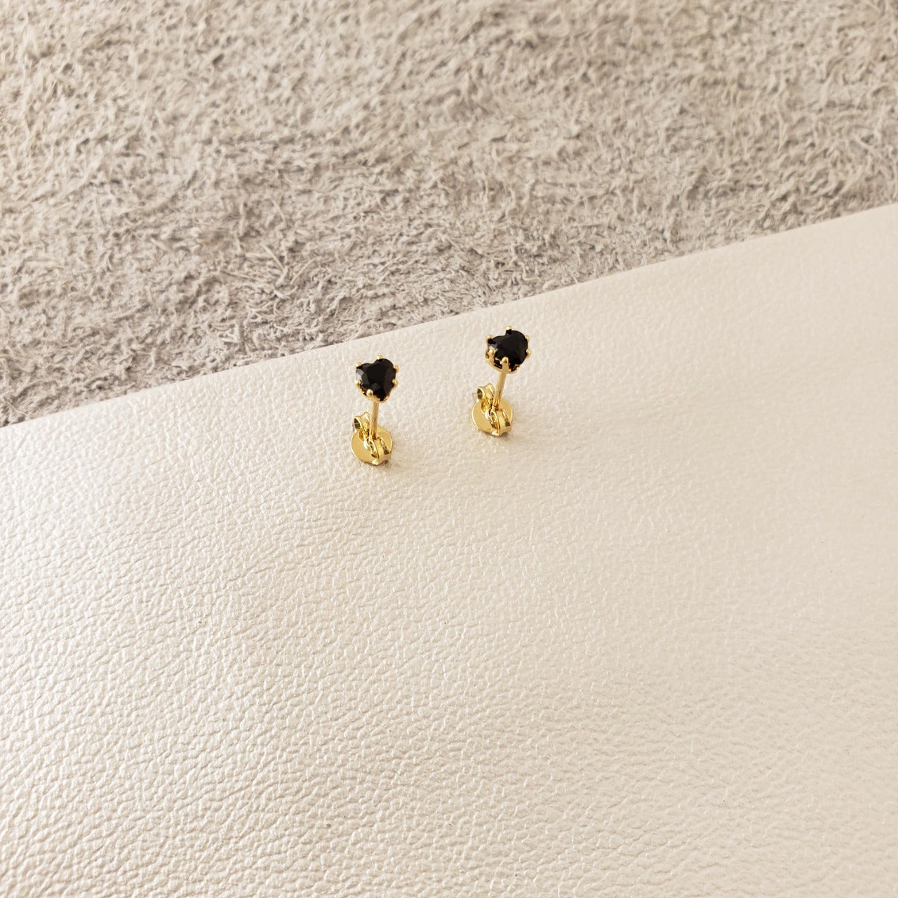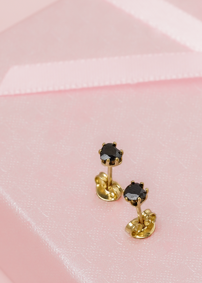Las prendas y accesorios en Oro Laminado 18k son Semi Joyas, puedes tener y lucir piezas con el color y la textura del oro 18k a un precio más asequible. Nuestros Aretes Topo Circonia Corazón NEGRO están elaborados sobre una aleación de cobre y paladio y sus 3 capas externas son láminas de oro 18k.