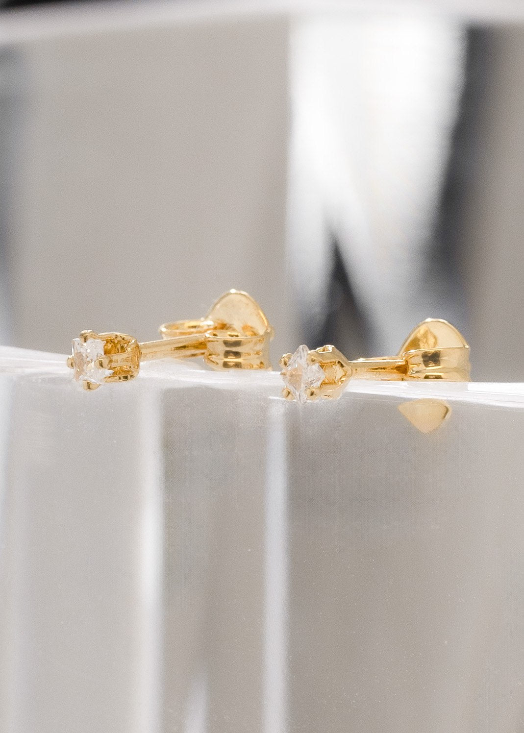 Las prendas y accesorios en Oro Laminado 18k son Semi Joyas, puedes tener y lucir piezas con el color y la textura del oro 18k a un precio más asequible. Nuestros Aretes Topo Mini Circon Cuadrado CRISTAL están elaborados sobre una aleación de cobre y paladio y sus 3 capas externas son láminas de oro 18k.