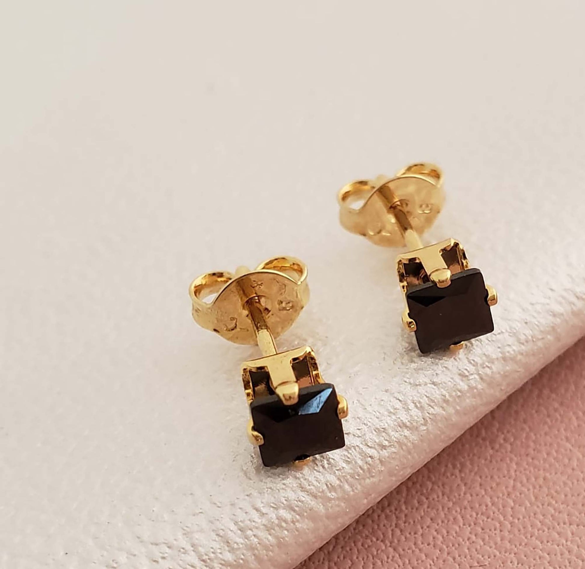 Las prendas y accesorios en Oro Laminado 18k son Semi Joyas, puedes tener y lucir piezas con el color y la textura del oro 18k a un precio más asequible. Nuestros Aretes Topo Circon Cuadrado NEGRO están elaborados sobre una aleación de cobre y paladio y sus 3 capas externas son láminas de oro 18k.