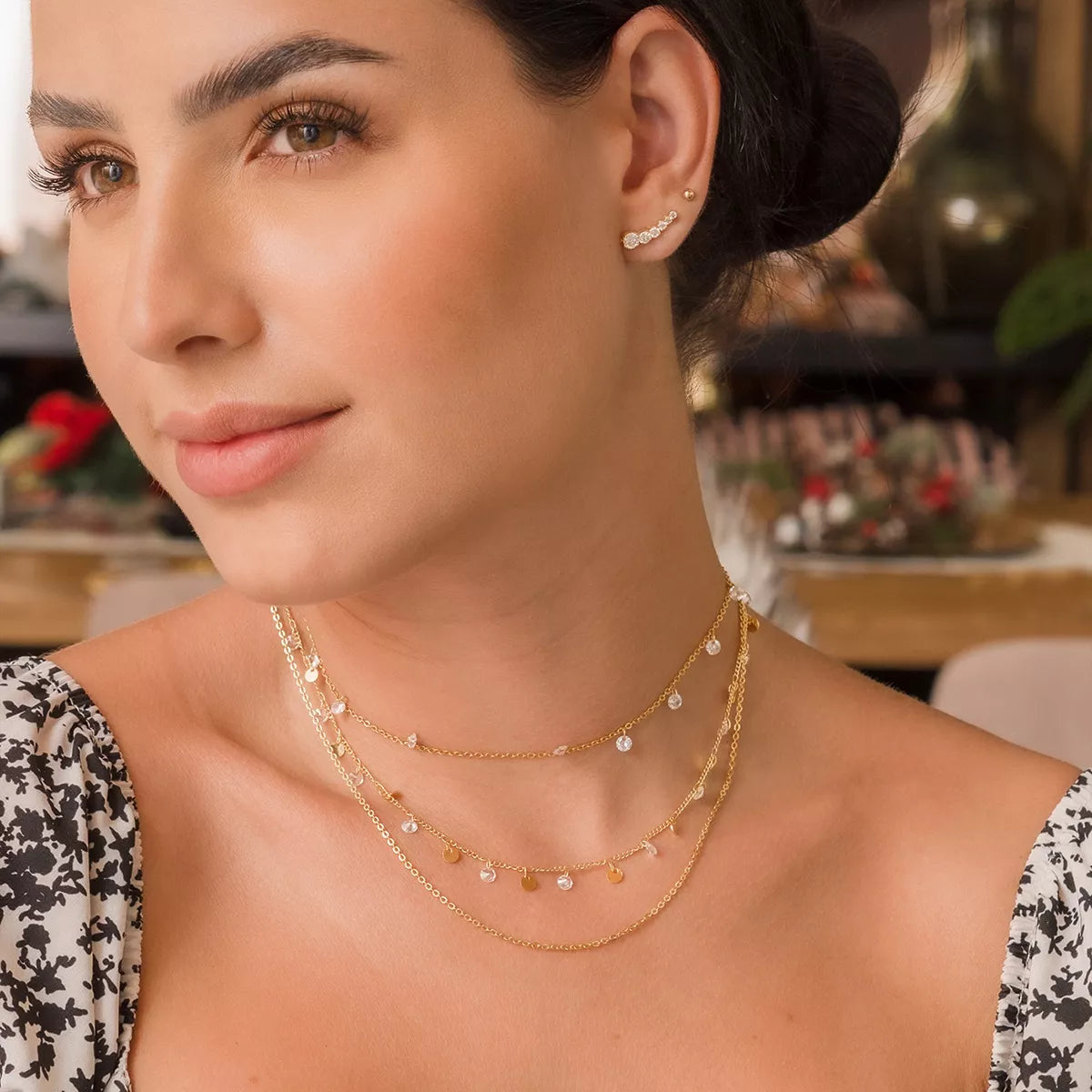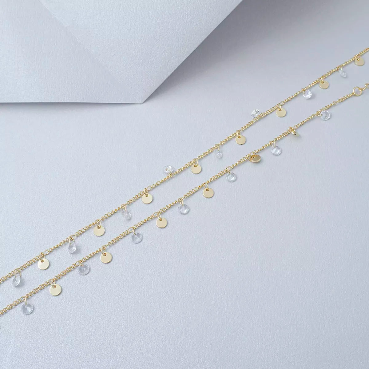 Las prendas y accesorios en Oro Laminado 18k son Semi Joyas, puedes tener y lucir piezas con el color y la textura del oro 18k a un precio más asequible. Nuestra Cadena Cubana circonios- 45 cm-extensor esta elaborada sobre una aleación de cobre y paladio y sus 3 capas externas son láminas de oro 18k.