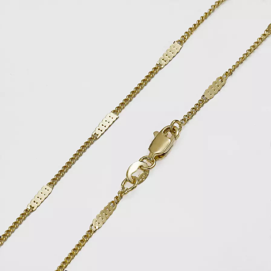 Las prendas y accesorios en Oro Laminado 18k son Semi Joyas, puedes tener y lucir piezas con el color y la textura del oro 18k a un precio más asequible. Nuestra Cadena Cubana Destellos 65cms esta elaborada sobre una aleación de cobre y paladio y sus 3 capas externas son láminas de oro 18k.