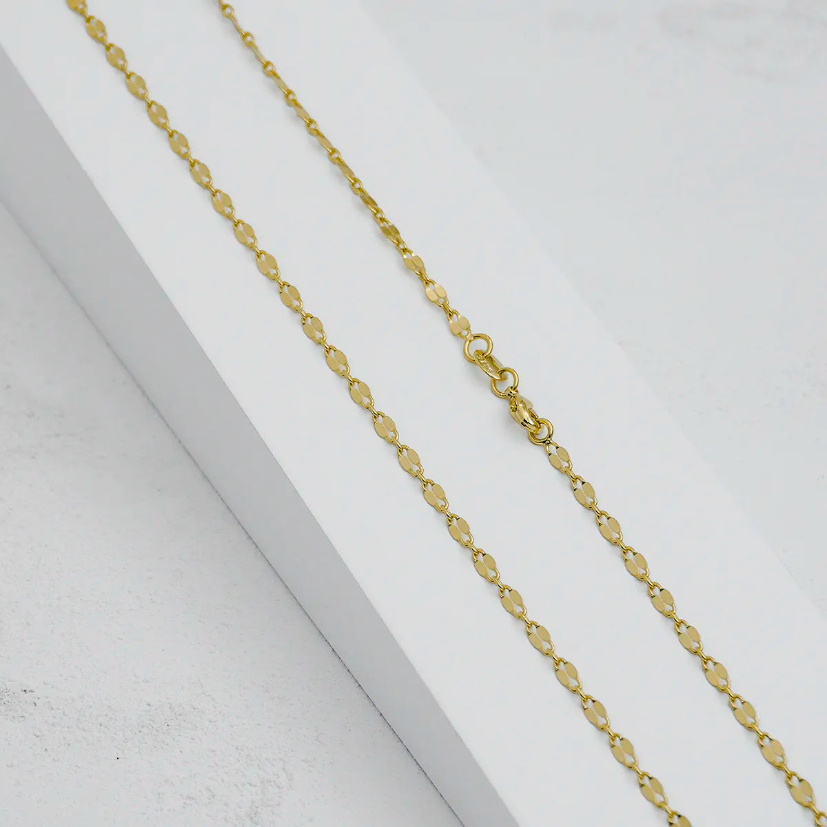 Las prendas y accesorios en Oro Laminado 18k son Semi Joyas, puedes tener y lucir piezas con el color y la textura del oro 18k a un precio más asequible. Nuestra Cadena Espejo Cuadrada 60 Cms esta elaborada sobre una aleación de cobre y paladio y sus 3 capas externas son láminas de oro 18k.