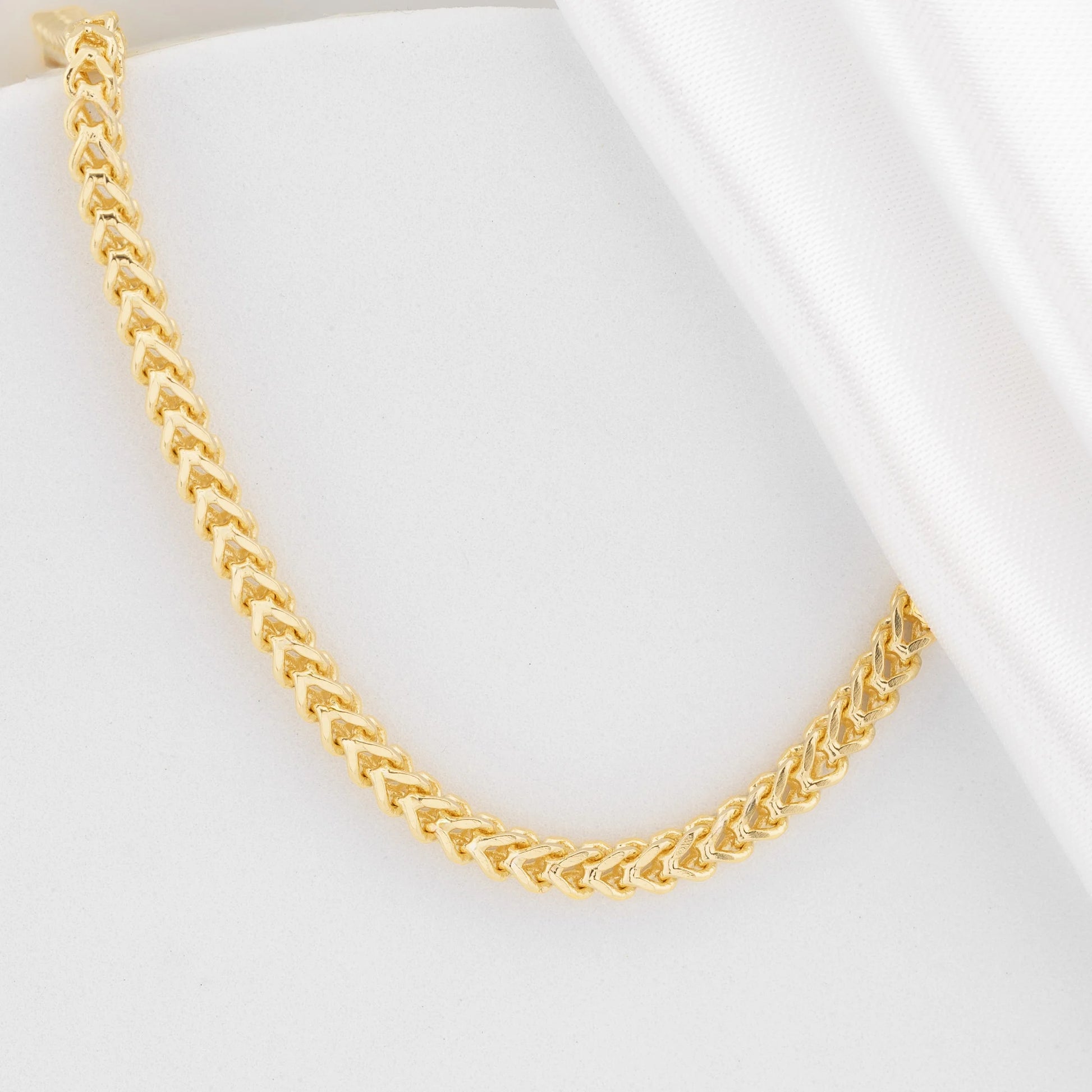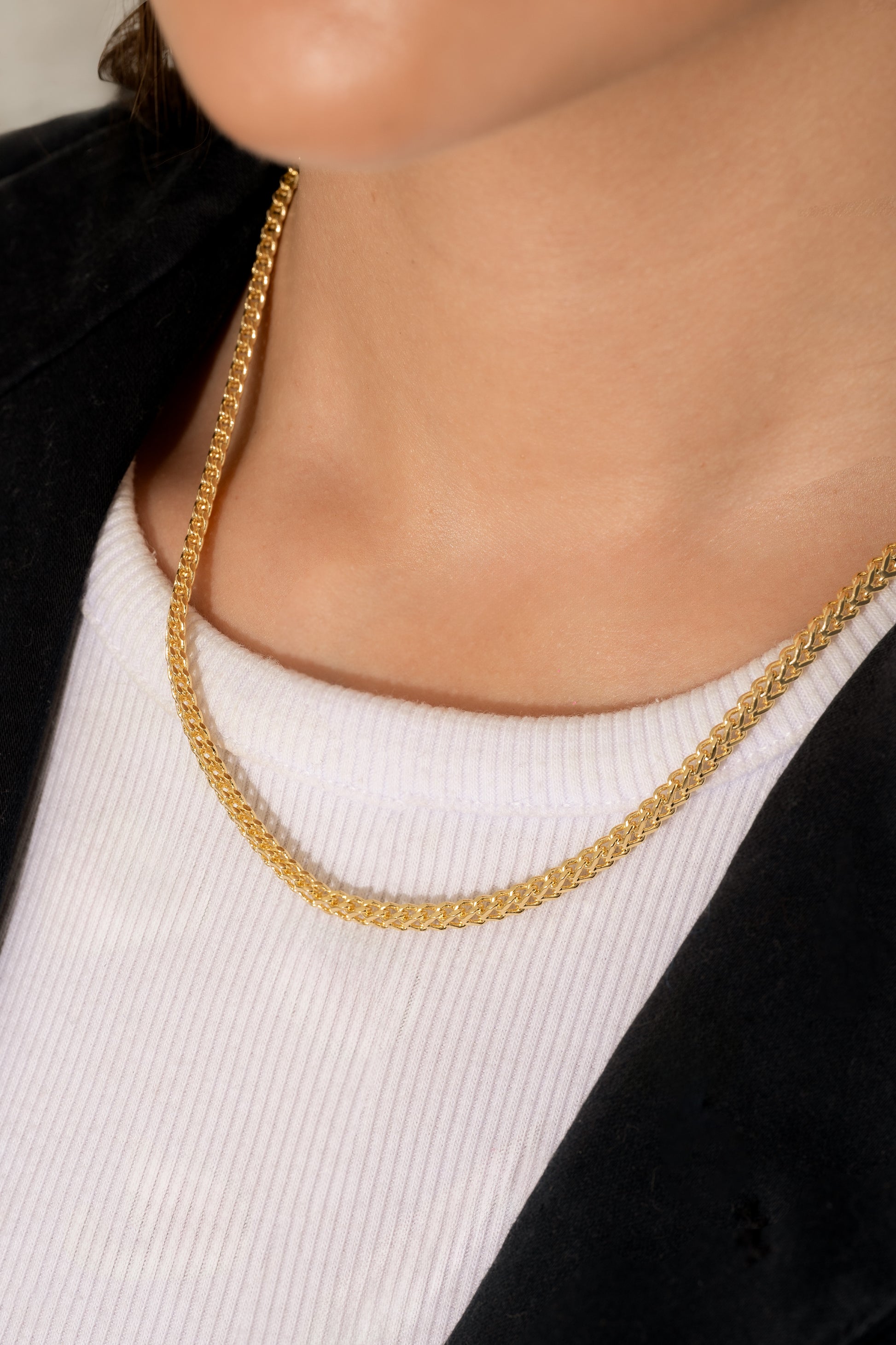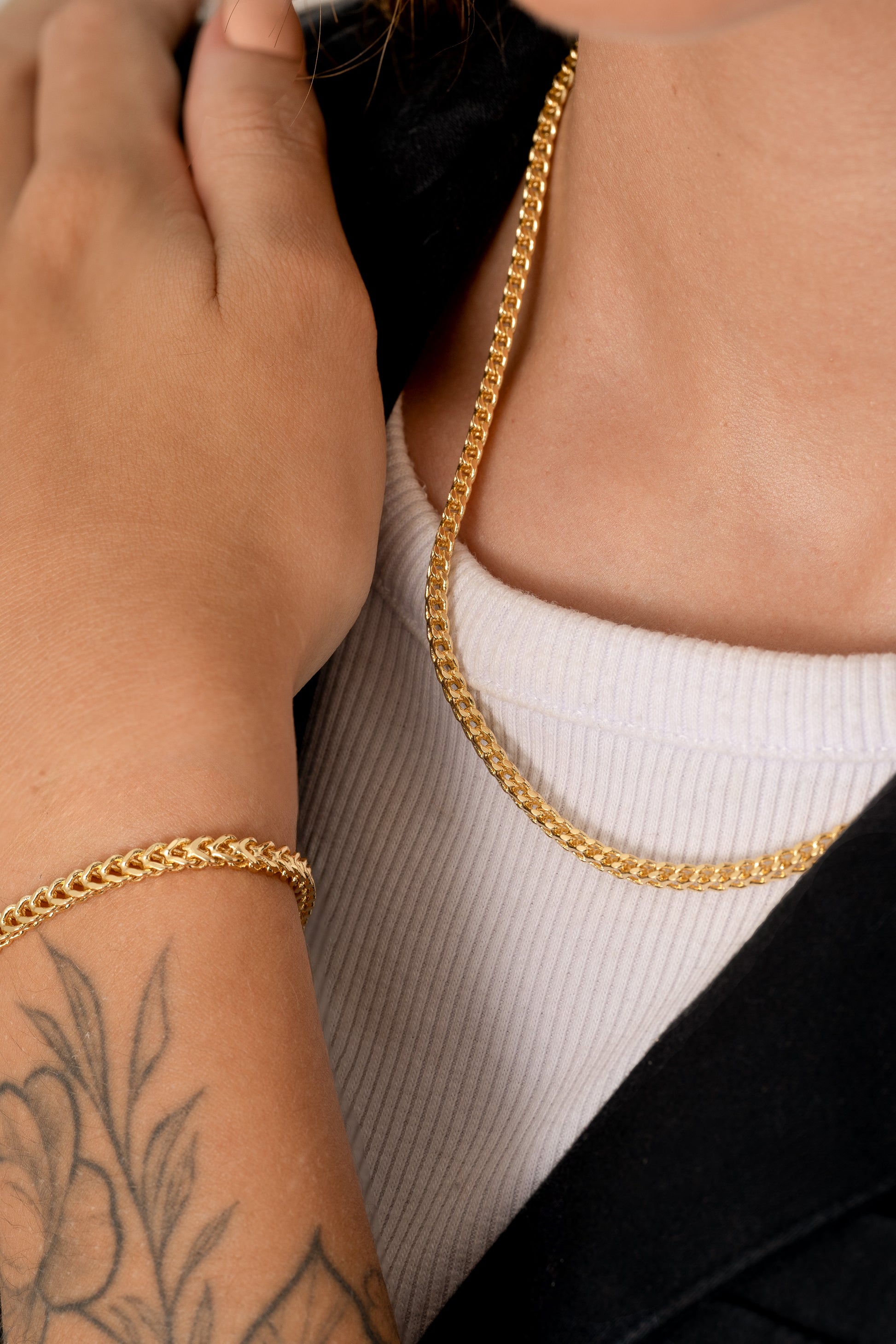 Las prendas y accesorios en Oro Laminado 18k son Semi Joyas, puedes tener y lucir piezas con el color y la textura del oro 18k a un precio más asequible. Nuestra Cadena Franco 45 Cms esta elaborada sobre una aleación de cobre y paladio y sus 3 capas externas son láminas de oro 18k.