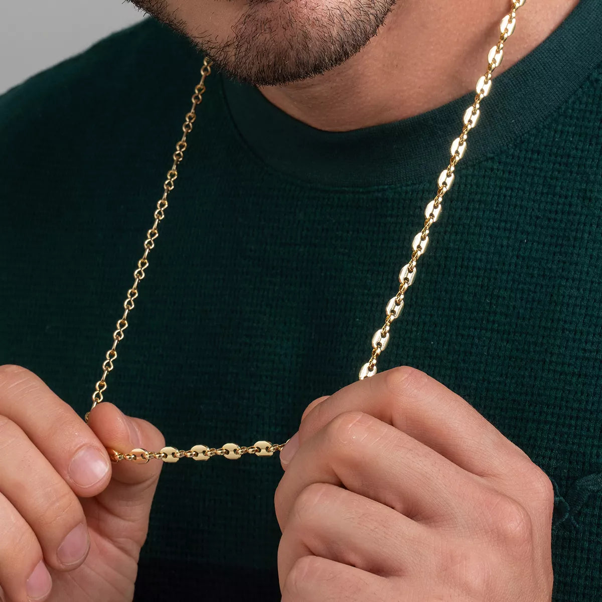 Las prendas y accesorios en Oro Laminado 18k son Semi Joyas, puedes tener y lucir piezas con el color y la textura del oro 18k a un precio más asequible. Nuestra Cadena Gucci 65Cm esta elaborada sobre una aleación de cobre y paladio y sus 3 capas externas son láminas de oro 18k.