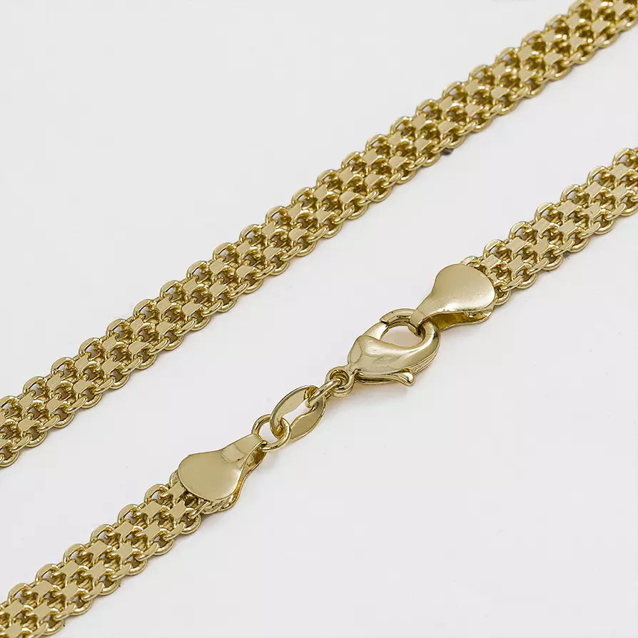 Las prendas y accesorios en Oro Laminado 18k son Semi Joyas, puedes tener y lucir piezas con el color y la textura del oro 18k a un precio más asequible. Nuestra Cadena T. Chino Doble Carril 65cm esta elaborada sobre una aleación de cobre y paladio y sus 3 capas externas son láminas de oro 18k.