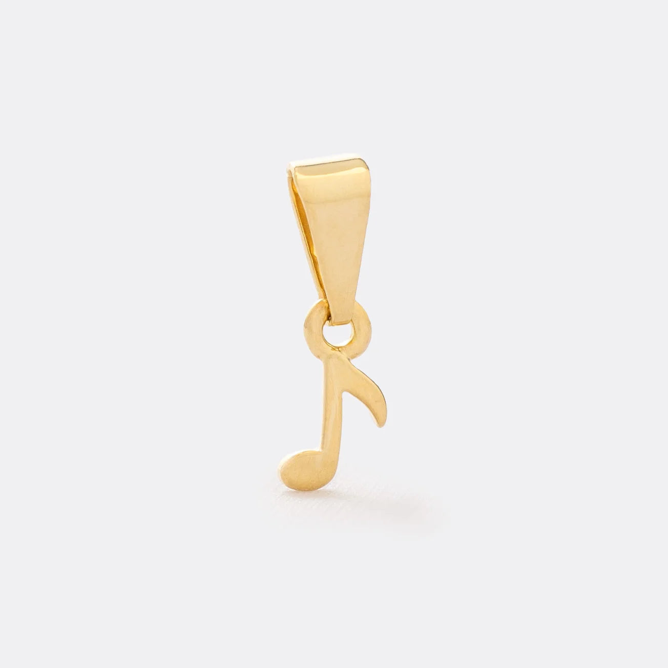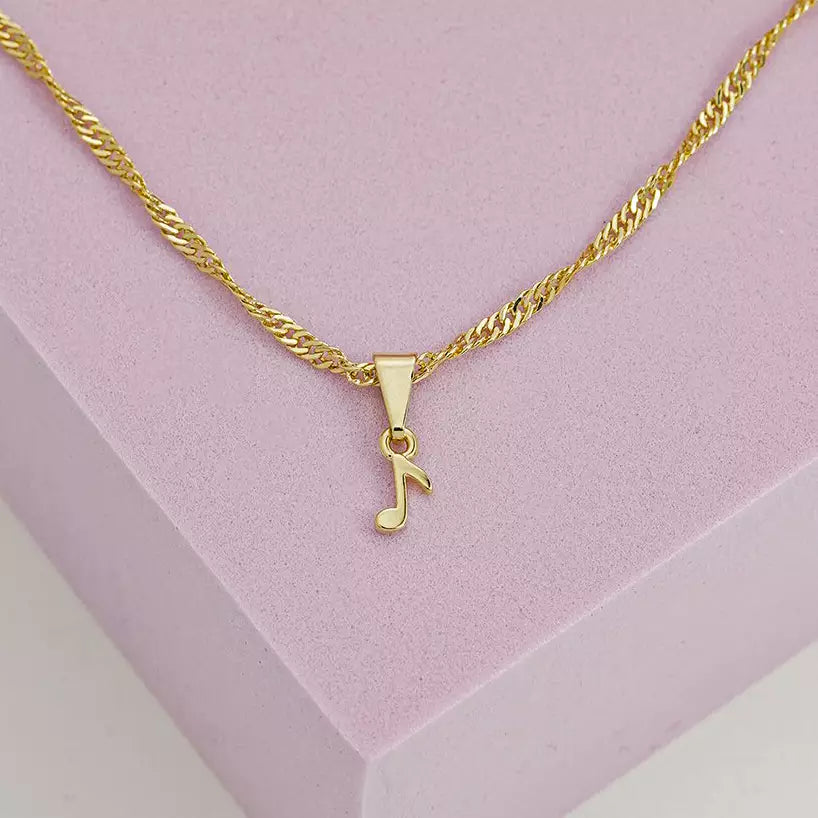 Las prendas y accesorios en Oro Laminado 18k son Semi Joyas, puedes tener y lucir piezas con el color y la textura del oro 18k a un precio más asequible. Nuestro Dije Corchea está elaborado sobre una aleación de cobre y paladio y sus 3 capas externas son láminas de oro 18k.