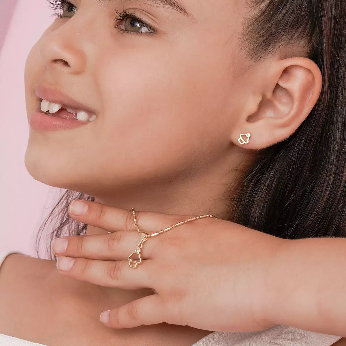 Las prendas y accesorios en Oro Laminado 18k son Semi Joyas, puedes tener y lucir piezas con el color y la textura del oro 18k a un precio más asequible. Nuestro Dije Cupcake Cristal está elaborado sobre una aleación de cobre y paladio y sus 3 capas externas son láminas de oro 18k.