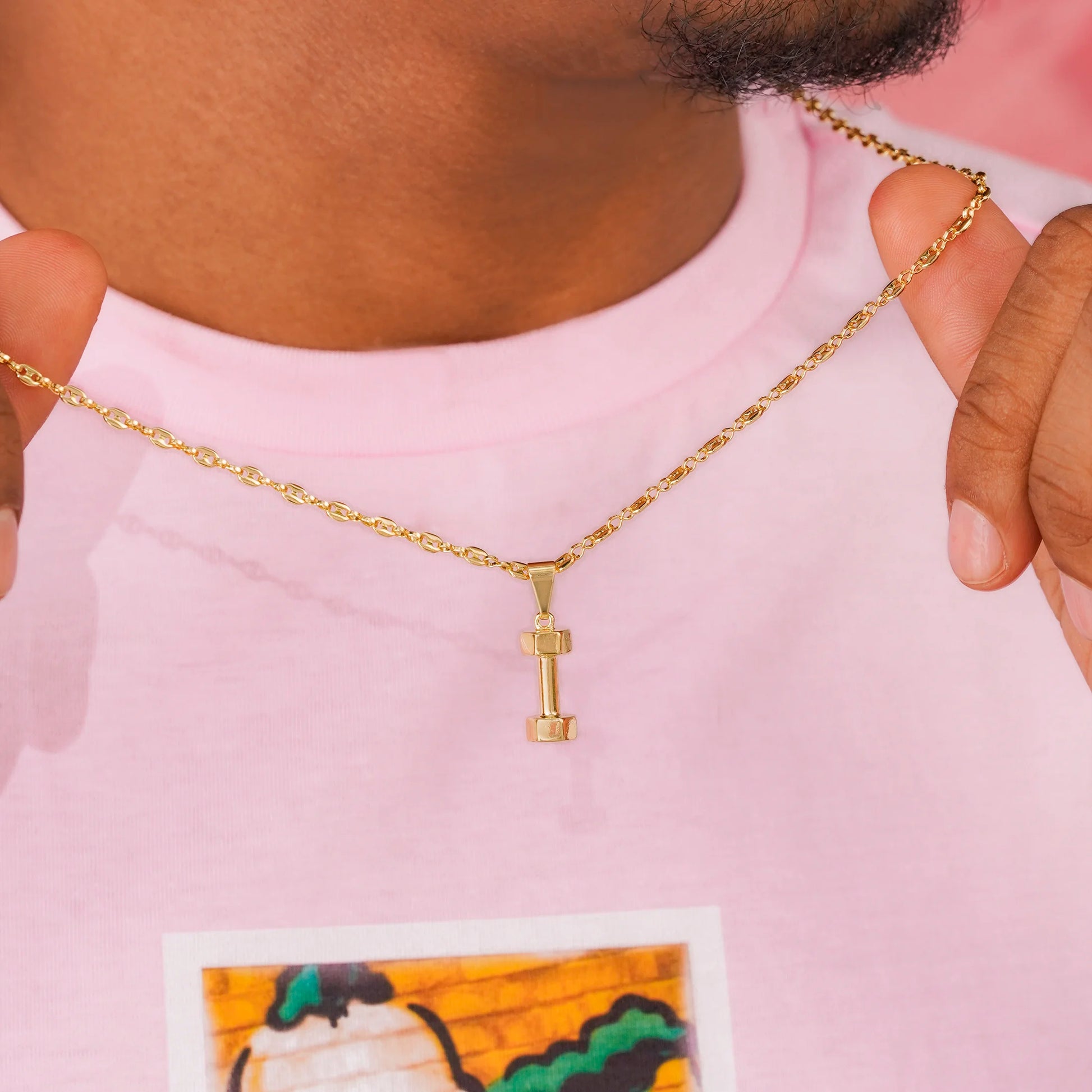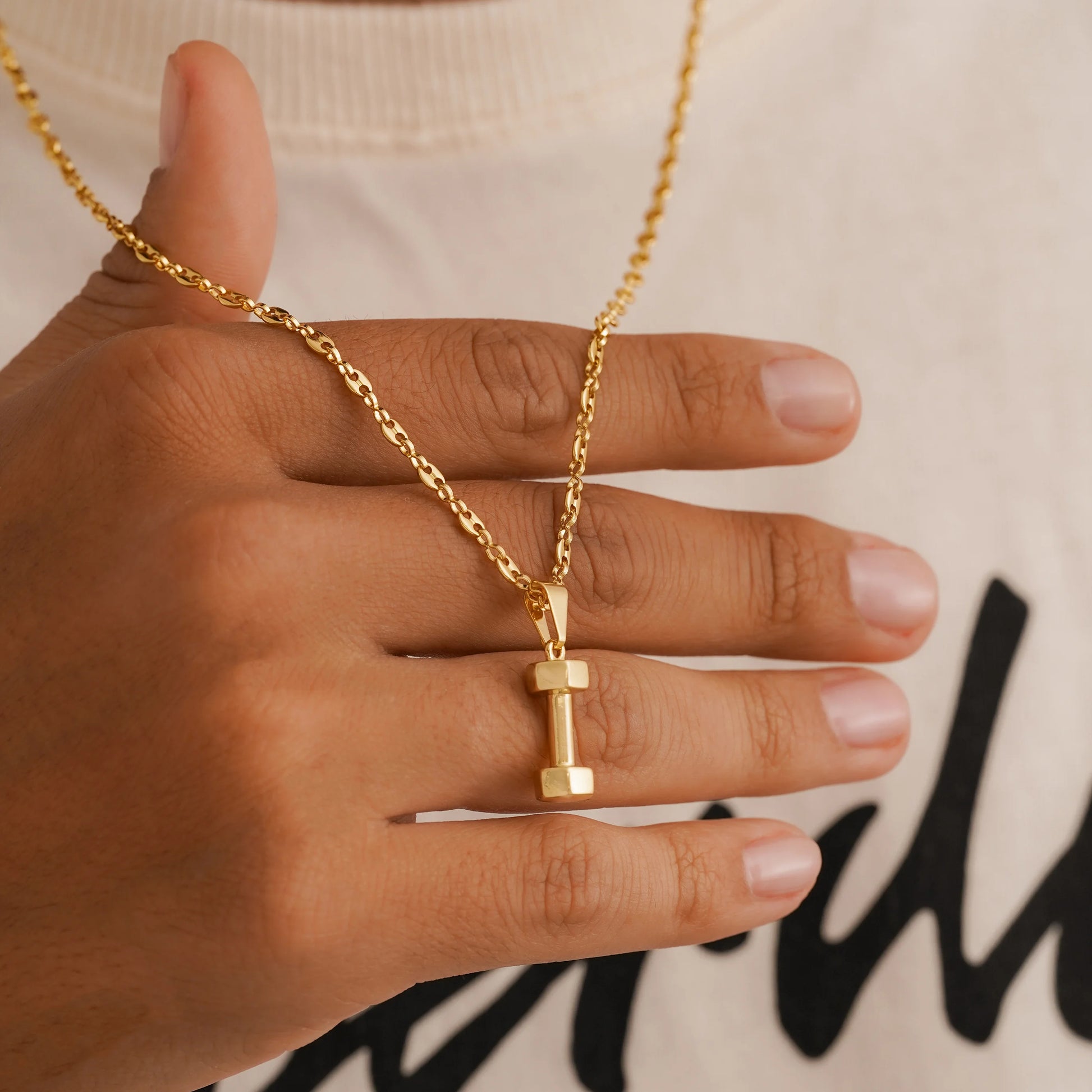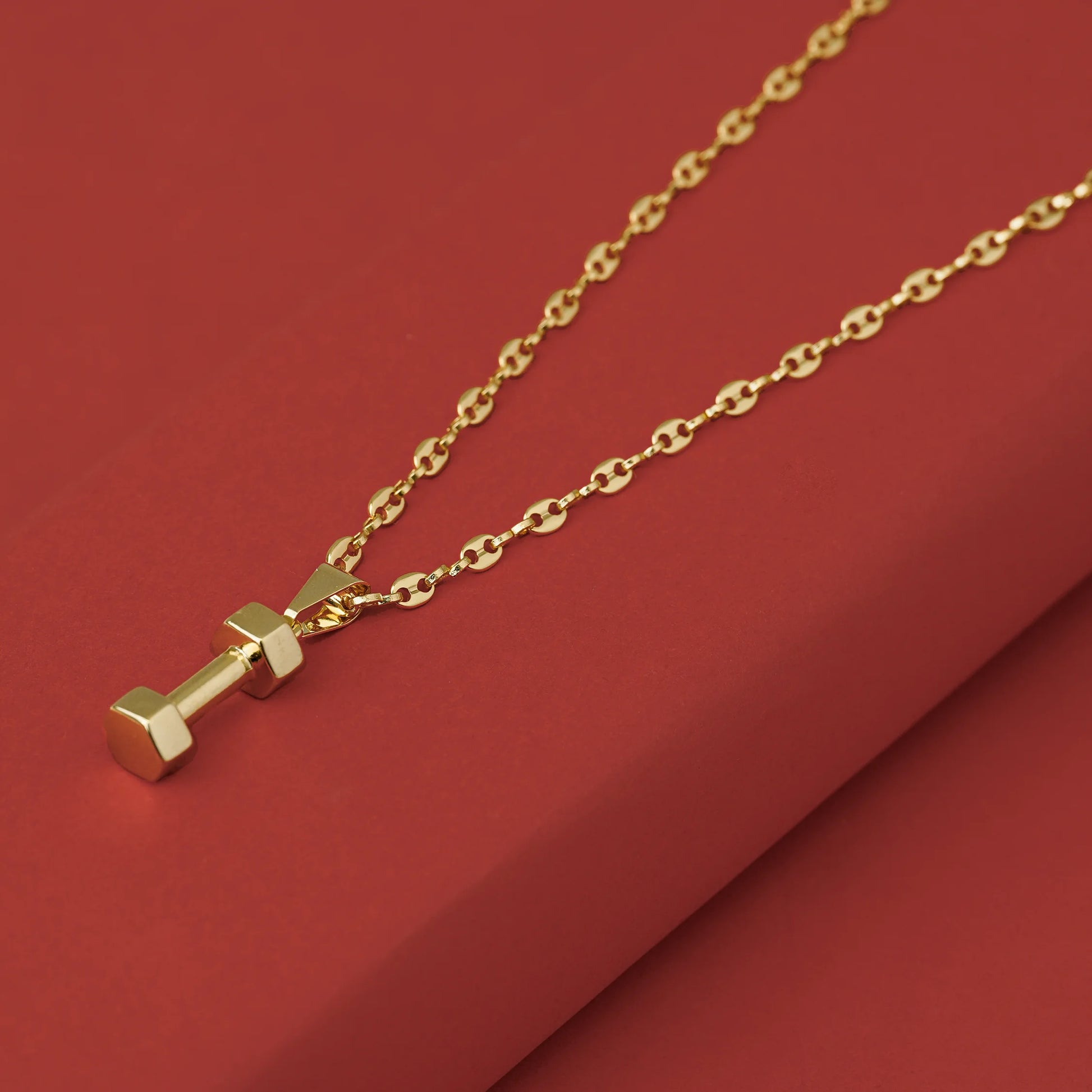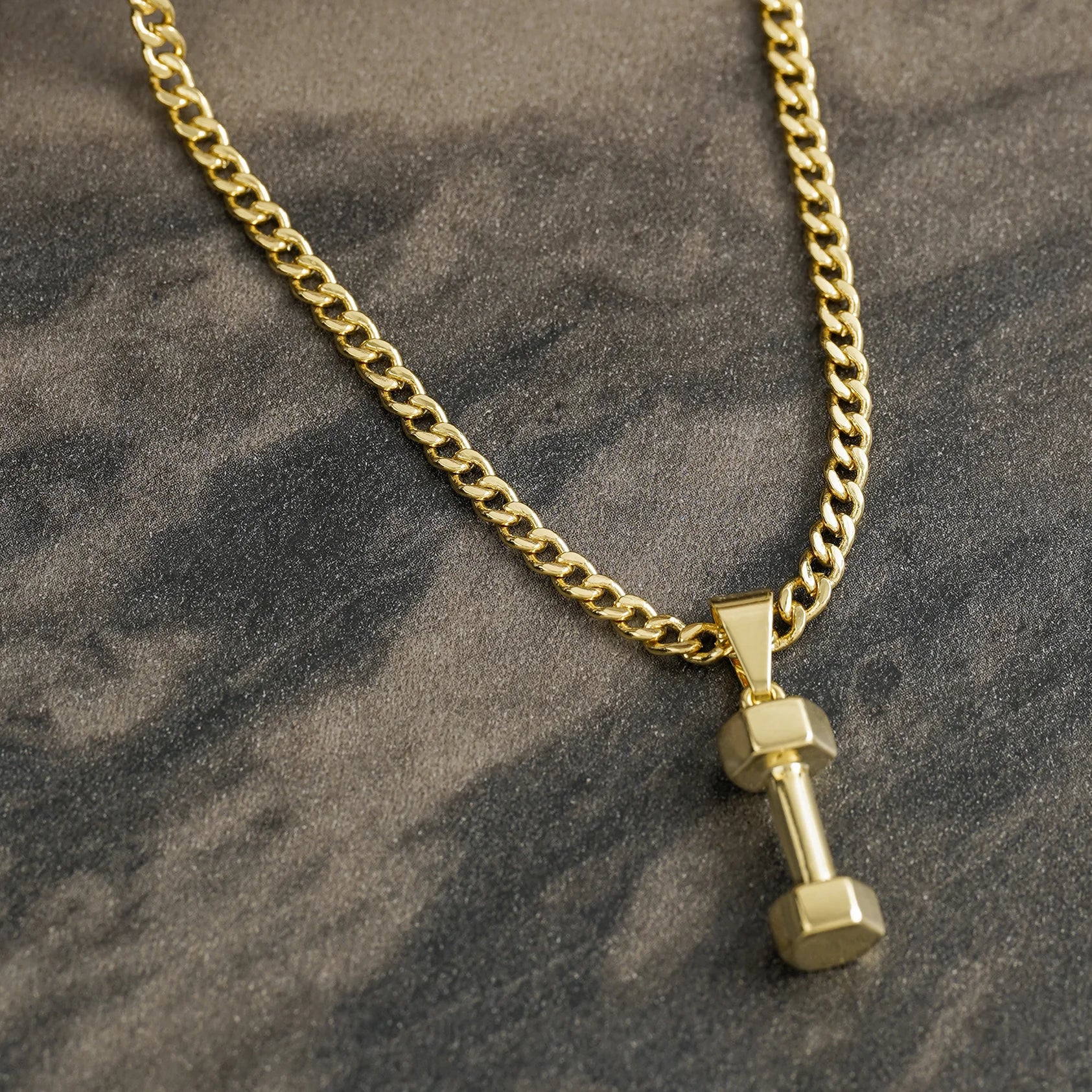 Las prendas y accesorios en Oro Laminado 18k son Semi Joyas, puedes tener y lucir piezas con el color y la textura del oro 18k a un precio más asequible. Nuestro Dije Mancuerna 1.8 Cms está elaborado sobre una aleación de cobre y paladio y sus 3 capas externas son láminas de oro 18k.