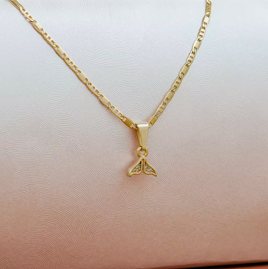 Las prendas y accesorios en Oro Laminado 18k son Semi Joyas, puedes tener y lucir piezas con el color y la textura del oro 18k a un precio más asequible. Nuestro Dije Mermaid está elaborado sobre una aleación de cobre y paladio y sus 3 capas externas son láminas de oro 18k.