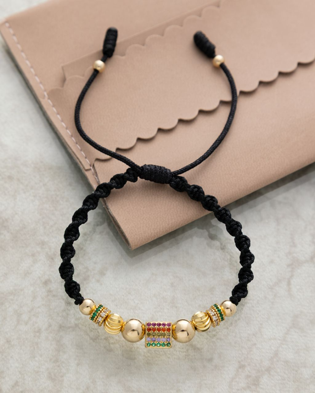 Pulsera Artesanal con 2 balin liso #6, 2 balin liso #4, 2 balin italiano #5, 4 rondeles #5, 2 balin liso #3 uno en cada punta y 1 Herraje Colors ORO LAMINADO 18K, elaborada en hilo coreano variedad de colores, elige el tuyo.