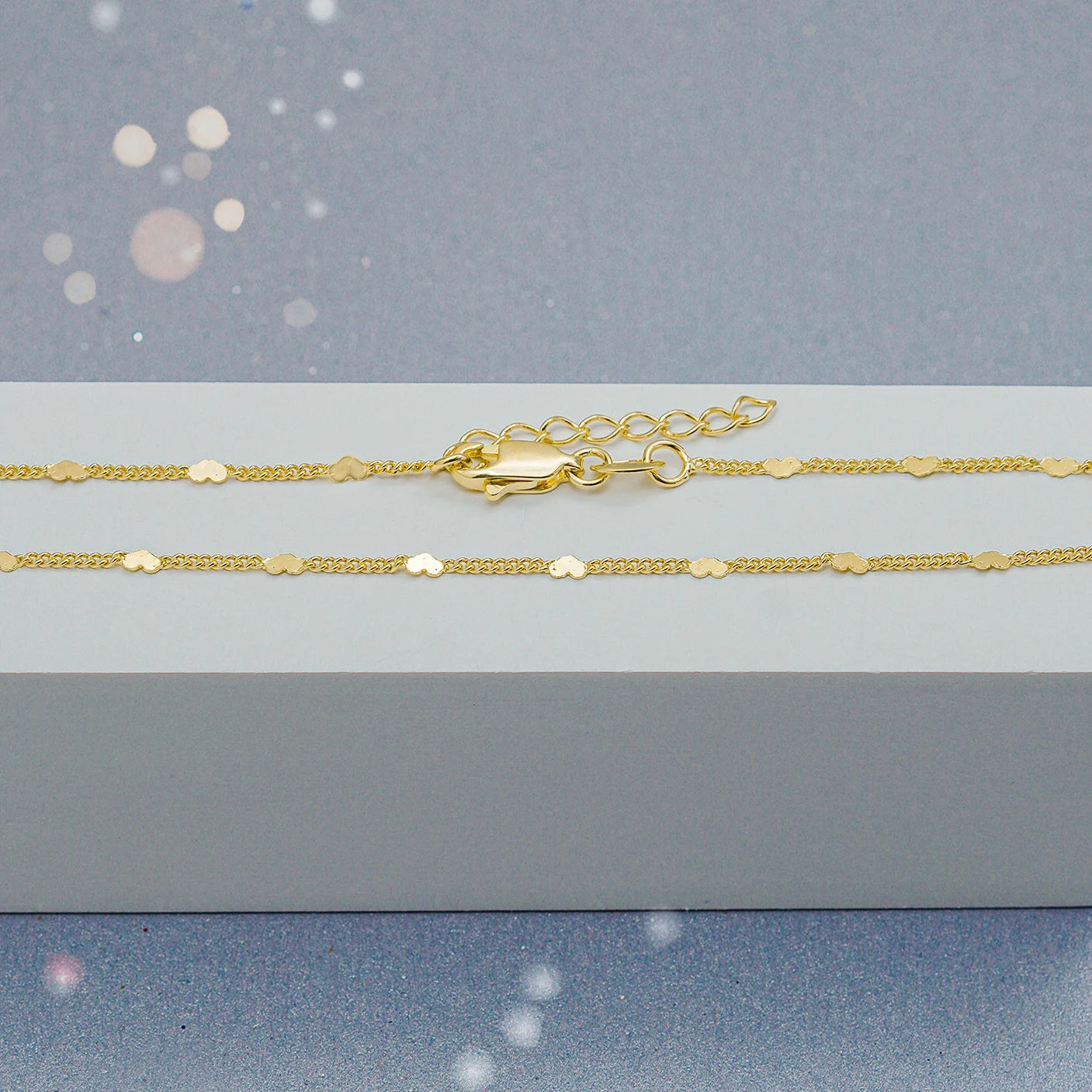 Las prendas y accesorios en Oro Laminado 18k son Semi Joyas, puedes tener y lucir piezas con el color y la textura del oro 18k a un precio más asequible. Nuestra Tobillera Cubana Love ext 23 cms esta elaborada sobre una aleación de cobre y paladio y sus 3 capas externas son láminas de oro 18k.