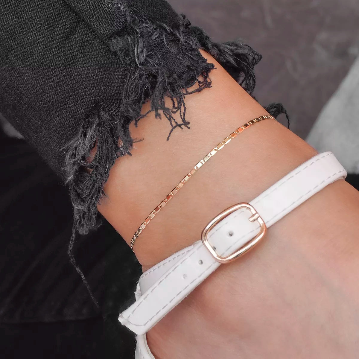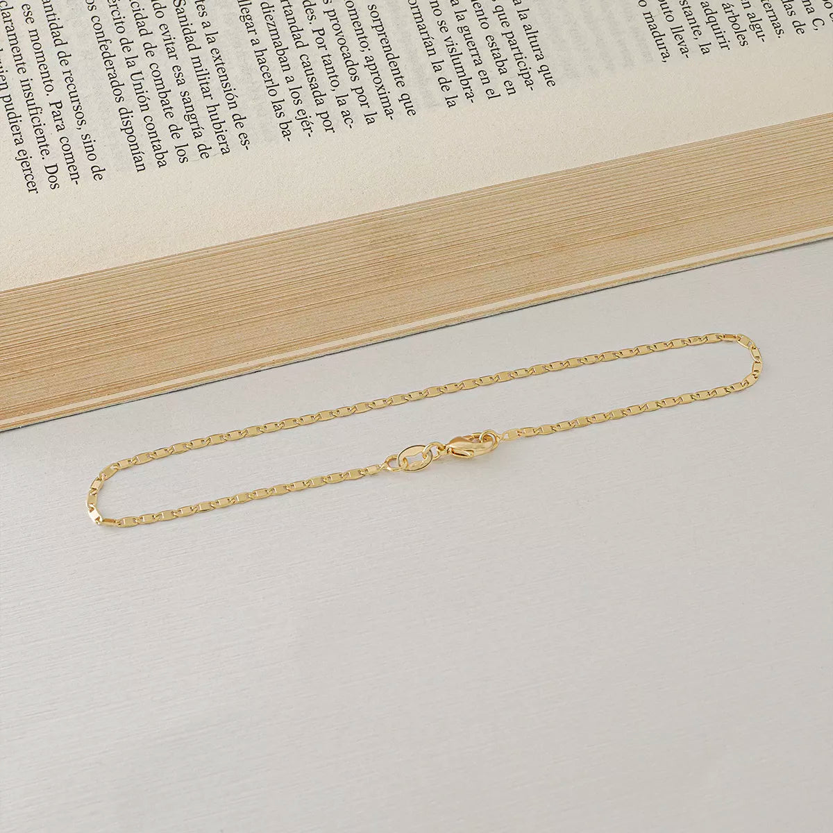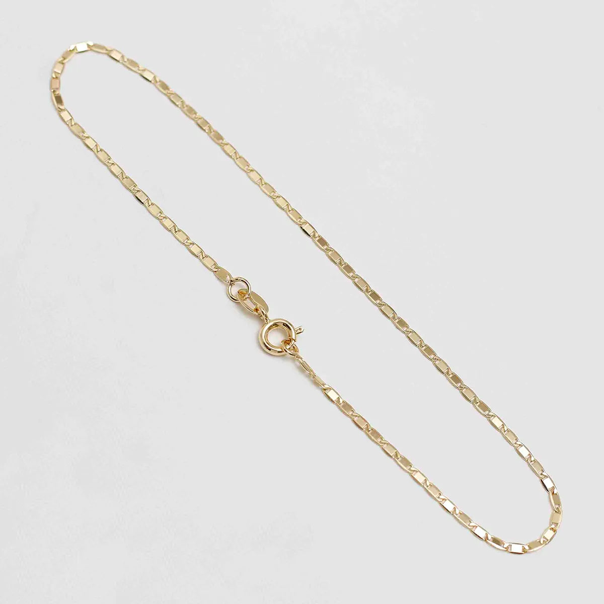 Las prendas y accesorios en Oro Laminado 18k son Semi Joyas, puedes tener y lucir piezas con el color y la textura del oro 18k a un precio más asequible. Nuestra Tobillera Escalera Delg. Plana Lisa 24.5cm esta elaborada sobre una aleación de cobre y paladio y sus 3 capas externas son láminas de oro 18k.