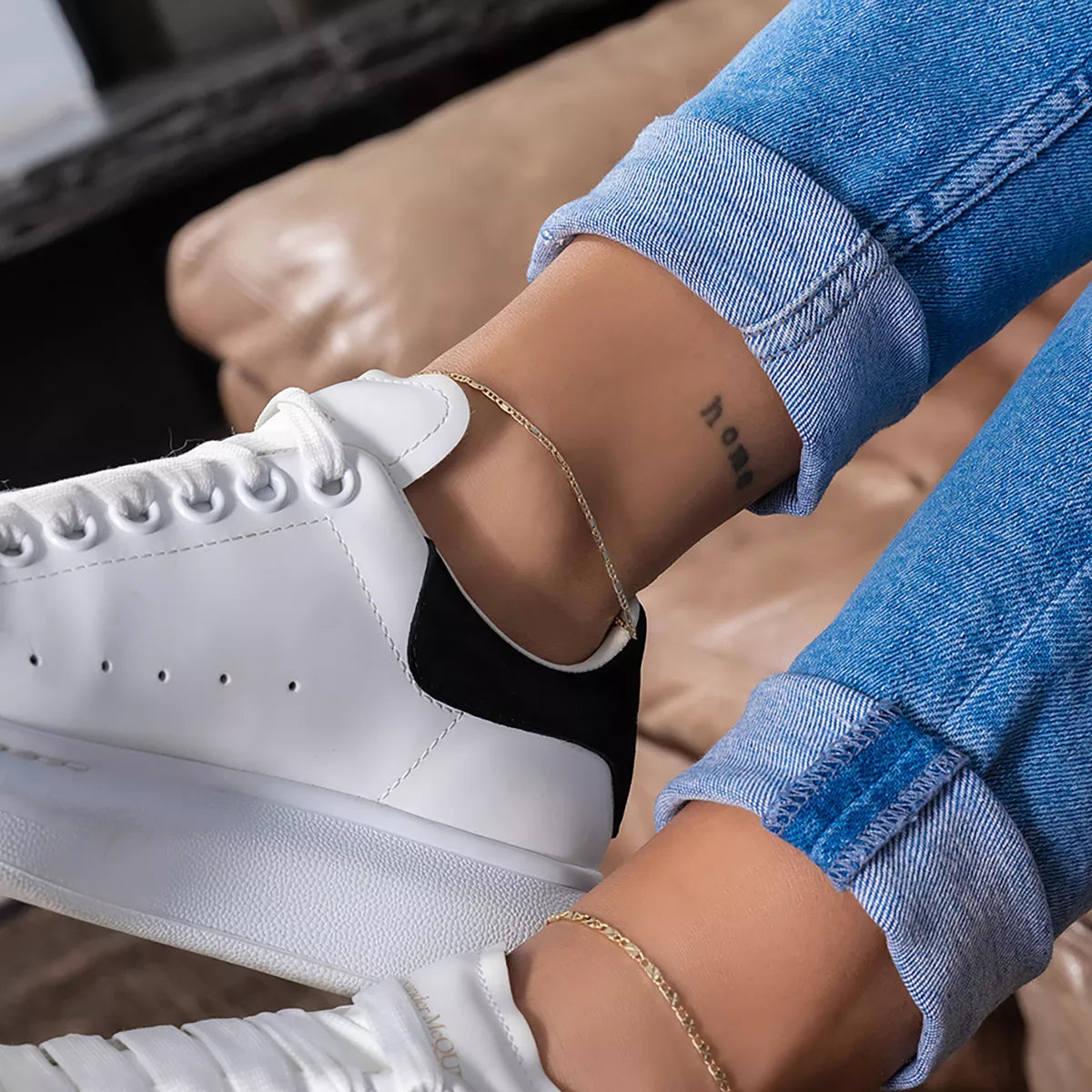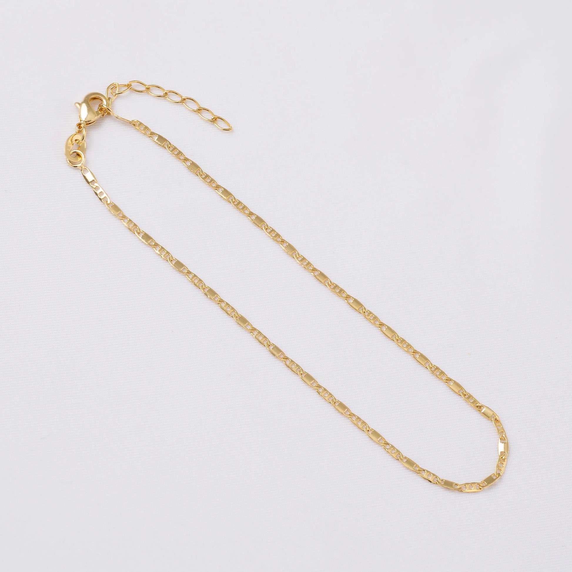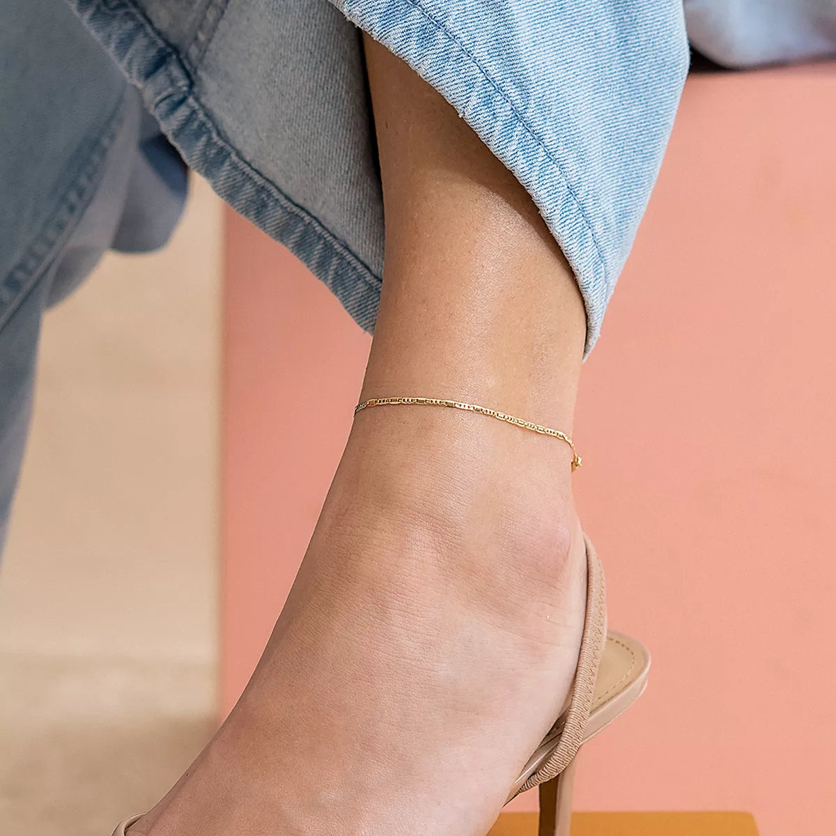 Las prendas y accesorios en Oro Laminado 18k son Semi Joyas, puedes tener y lucir piezas con el color y la textura del oro 18k a un precio más asequible. Nuestra Tobillera Escalera Y Plana 23 Cms + Extensor esta elaborada sobre una aleación de cobre y paladio y sus 3 capas externas son láminas de oro 18k.